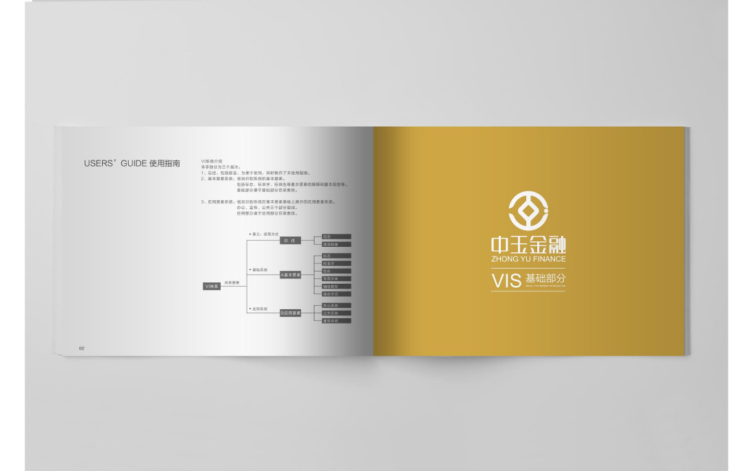 中玉金融全套VI設計。標志由“中玉”兩字變形組合而來,造型為古銅錢,體現了企業的行業特性,本案還設計了中玉金融的標準字、標準色等基礎部分及企業在經營活動中所涉及到的其他應用部分,例如名片、信紙、海報等規范設計。