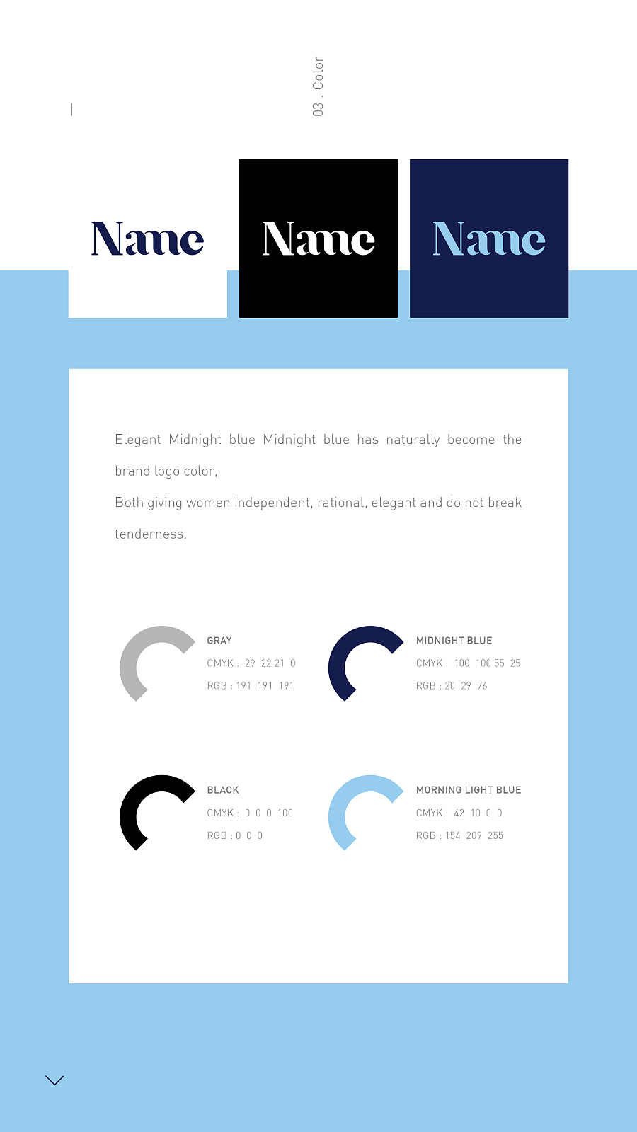 Name原創品牌,主張女性個性自主,做最好的自己。堅持現代、年輕、簡潔、實用與理性的設計理念,詮釋女性的獨立個性,感性優雅之美。在大家都給自己標榜眾多頭銜,貼上各種標簽的現在,名字似乎已經成了一種最直接的宣傳方式,而Name的理念,則讓1912在進行VI設計時,拋棄掉這些束縛,做最簡潔的設計。