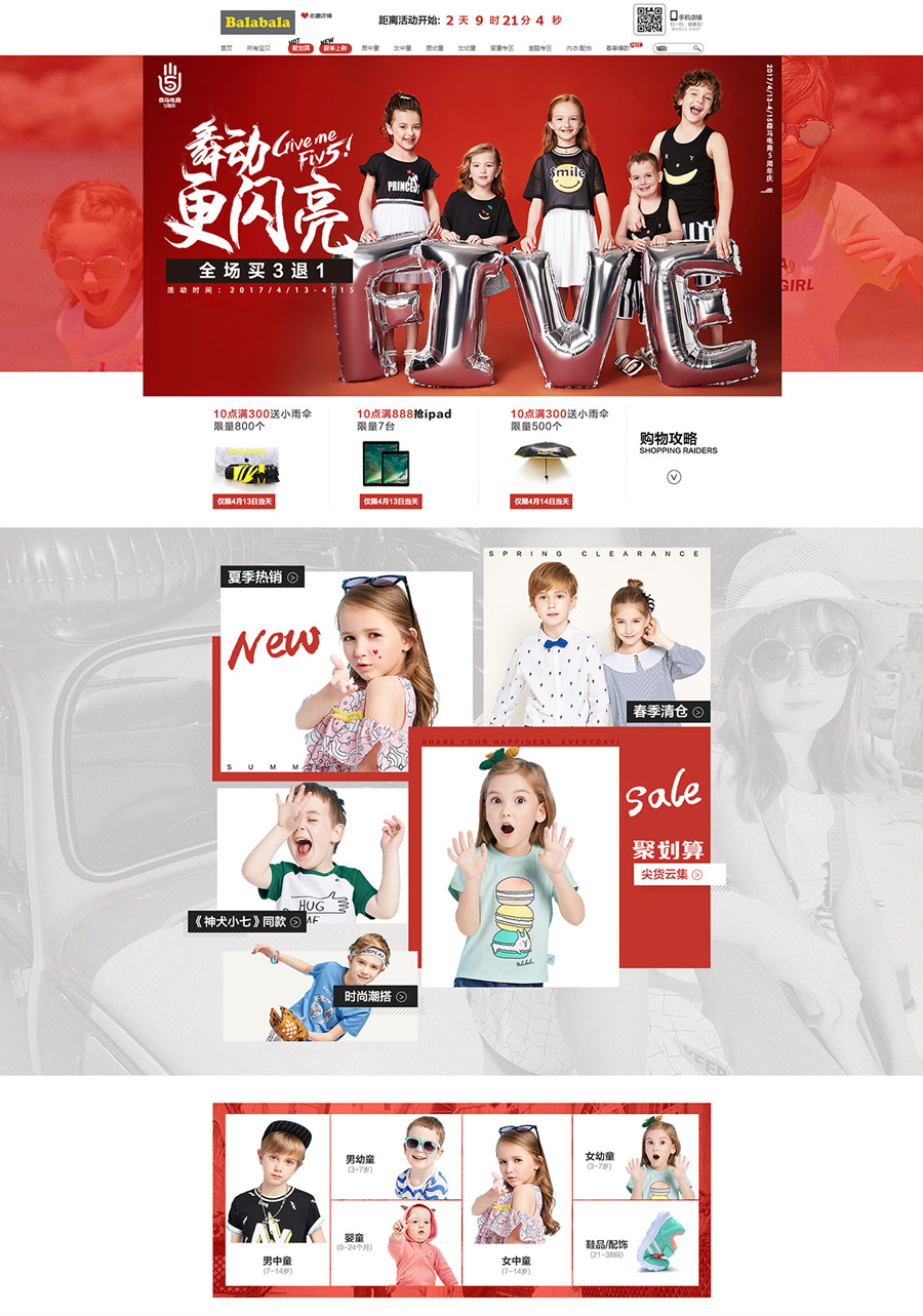巴拉巴拉童裝專題頁面設計案例是由1912做的童裝專題頁面設計案例之一。