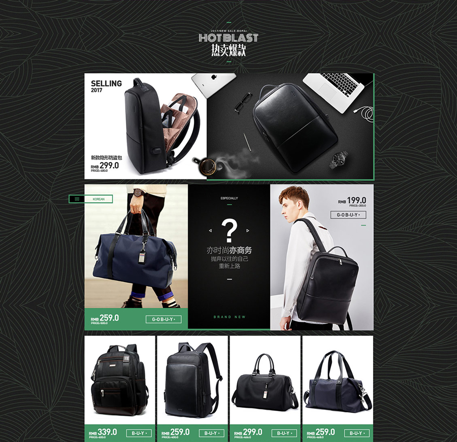 箱包頁面設(shè)計(jì)案例,皮具頁面設(shè)計(jì)案例,博牌箱包皮具專題頁面設(shè)計(jì)案例