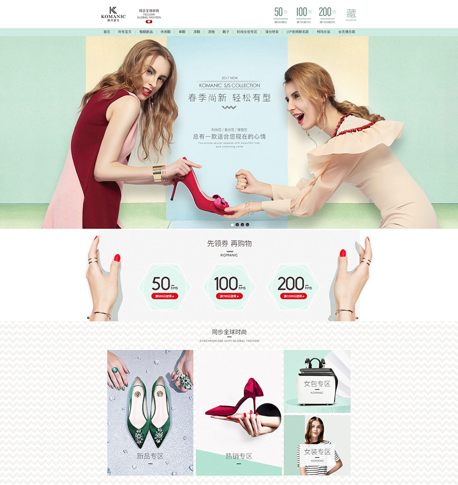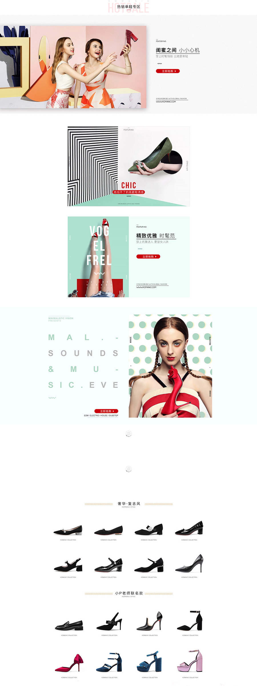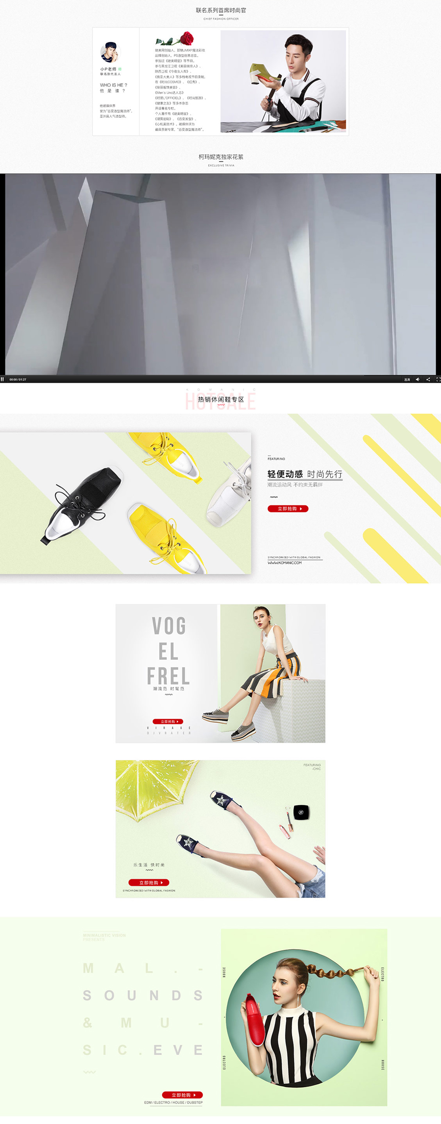 今天1912編者為你推出《柯瑪妮克時尚女鞋活動專題頁面設計案例》。此頁面設計是以薄荷綠為主色調,有夏季清涼的感覺。此頁面并且設置有視頻板塊,讓用戶更加直觀的了解產品。