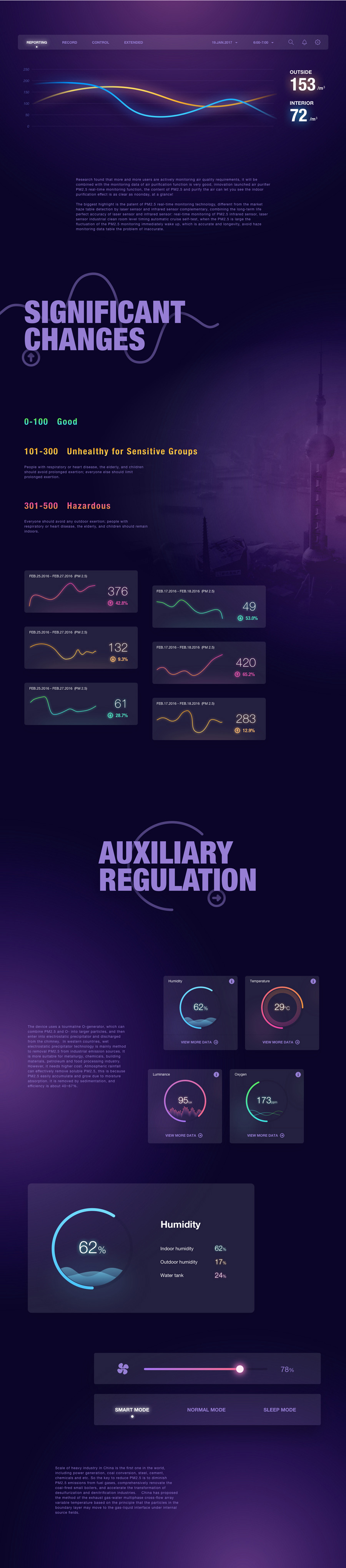 1912分享:智能家居類嵌入式空氣凈化器,UI設(shè)計(jì)處理了客戶敏感部分,暫時(shí)只能先放出其中一部分概念稿斷斷續(xù)續(xù)做了很久,很多地方配色修改了很多次希望能提供給萌新朋友們一些思路吧