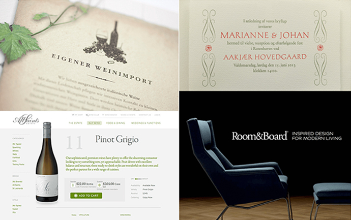 過渡期羅馬體(舊體到現代體)的代表性字體,非常經典,給人古典、高貴的感覺。