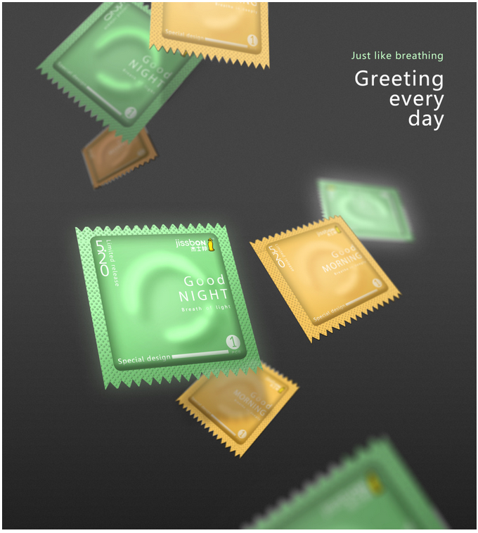 在大賽限制的那么多個主題里,其實最想做的就是"預防艾滋病日"的主題。因為套套最重要的作用之一就是:預防艾滋病傳染。