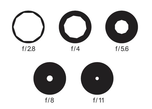 表達光圈口徑大小我們用f值。常用的光圈值系列如下:f2、f2.8、f4、f5.6、f8、f11、f16等。