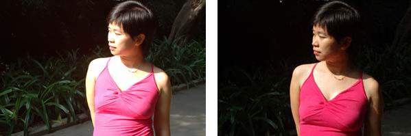 左圖主體欠曝光,右圖主體曝光正常
