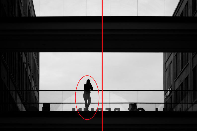 能拍攝出對稱畫面的照片是非常了不起的成就,完全對稱也很好理解。為了使這樣的畫面更有趣,你可以在對稱軸邊上簡單地多加入一個主題元素。
