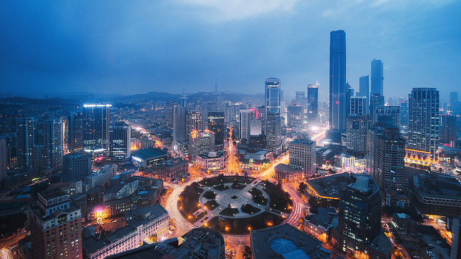 學苑廣場,夜景。1999年建成,連接中山路與黃浦路,成為進出高新園區的標志。