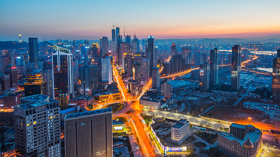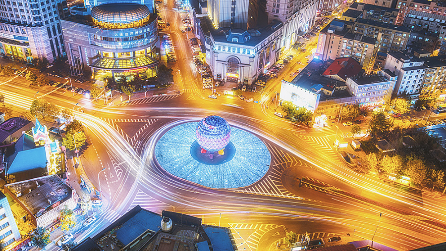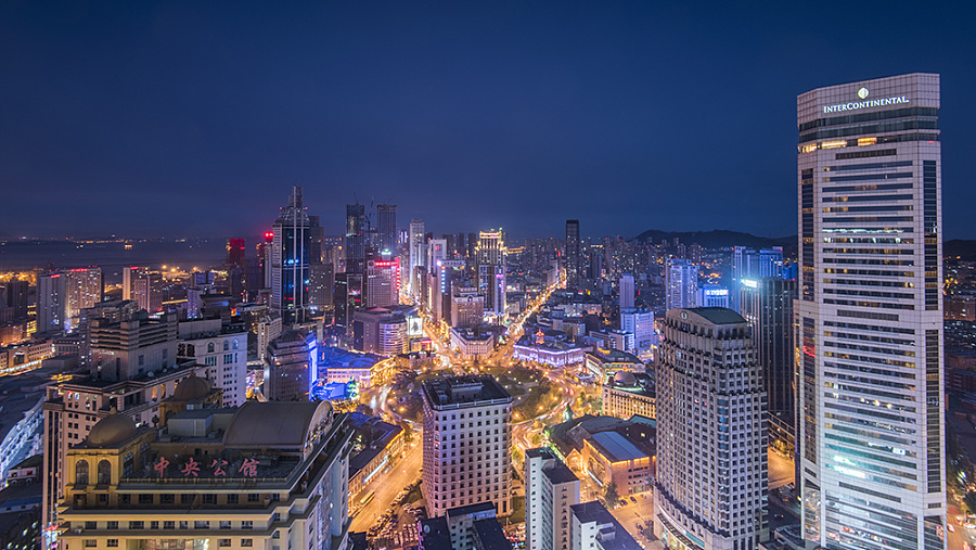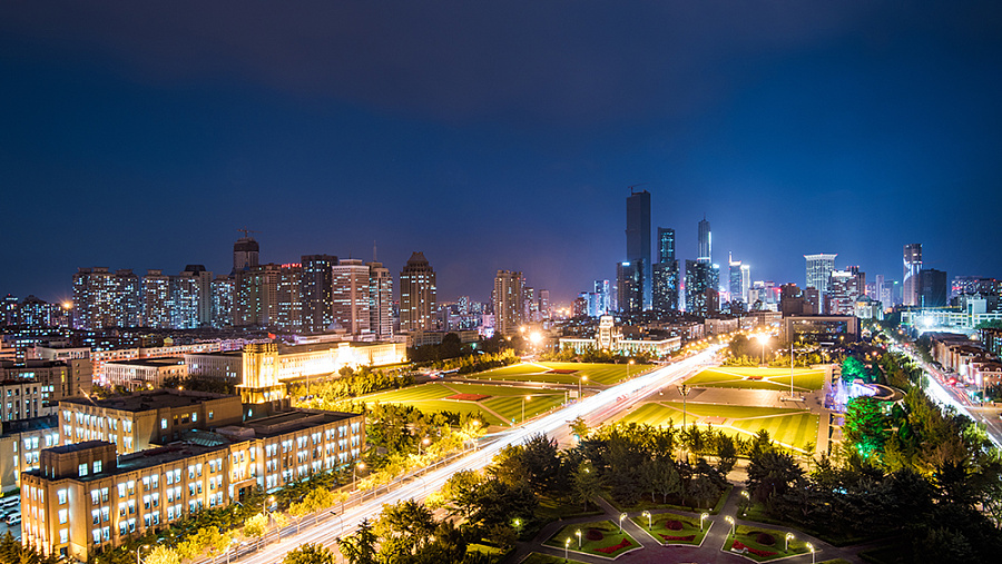 數碼廣場,夜景。連接五一路與數碼路,是大連重要的市政交通廣場之一。