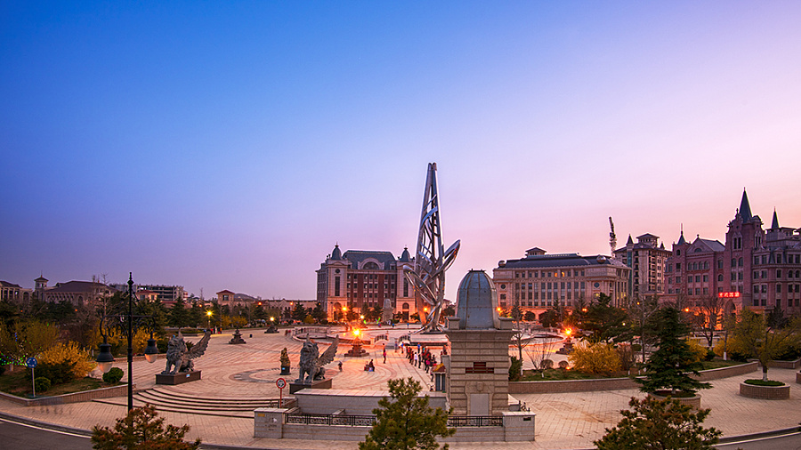 中山廣場,建于1899年,修建立于沙俄統治時期,舊稱尼古拉耶夫廣場,是沙俄與日本占領時期的市中心,也是大連現代的重要金融中心之一。整座廣場成圓形輻射狀,充滿了歐洲建筑風格。