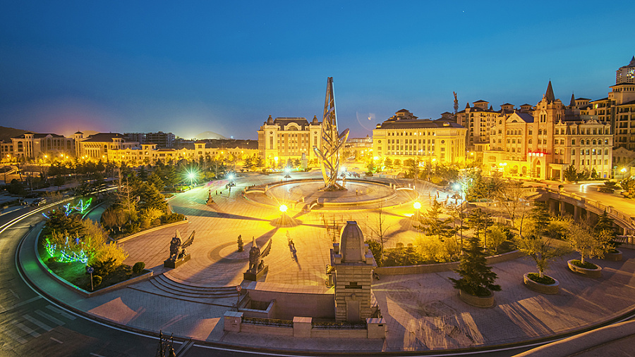 友好廣場,大連夜之眼。始建于沙俄統治時期,日本統治時期稱西廣場,50年代為了紀念中蘇友好而更名為友好廣場。