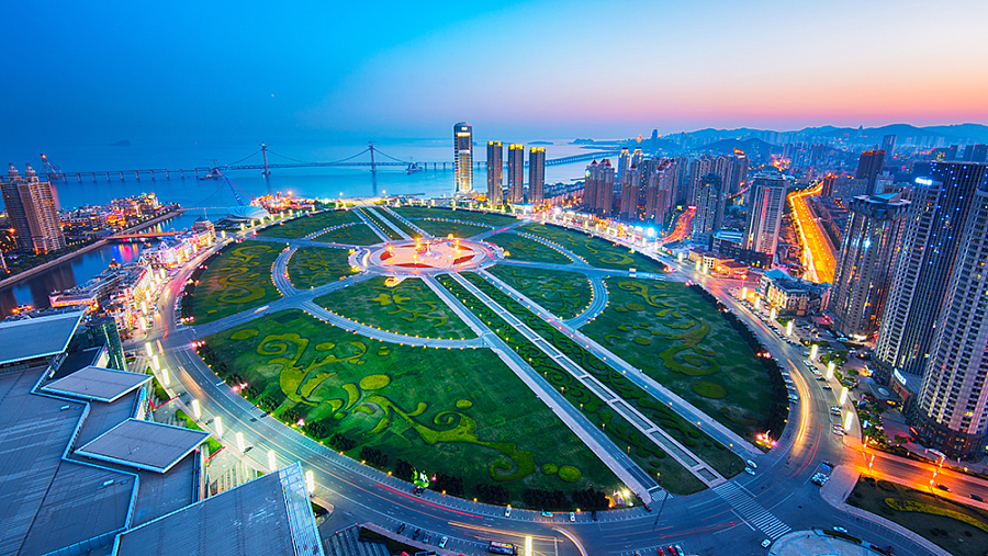 小平島中心廣場。建造模式和大小與大連的中山廣場相當,為大連高新區新的一座時尚生活廣場。