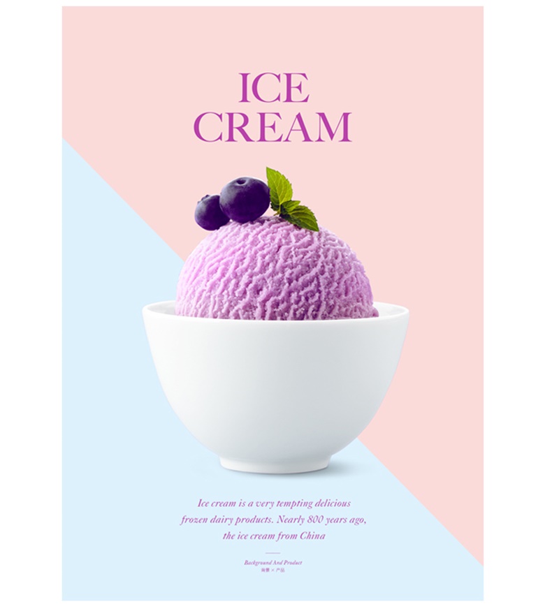 模擬一個(gè)冰淇淋的畫(huà)面,分別以純顏色背景、場(chǎng)景背景、漸變背景、圖形背景進(jìn)行設(shè)計(jì)。