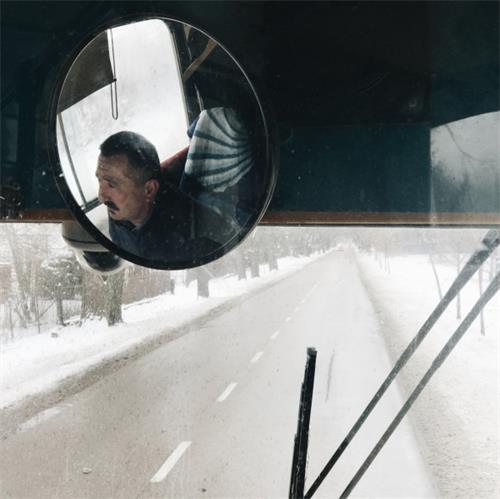舉個(gè)例子來分析。 這組照片講述了風(fēng)雪中來到波蘭一個(gè)叫熱拉佐瓦沃拉的小村子乘坐公共汽車的經(jīng)歷。這組照片視角多樣,但最后呈現(xiàn)的風(fēng)格是一致的,“玻璃上的霧氣”是其貫穿始終的元素,也可以說是將焦段不同、對(duì)象不同、視角不同的照片凝聚在一起的線索。