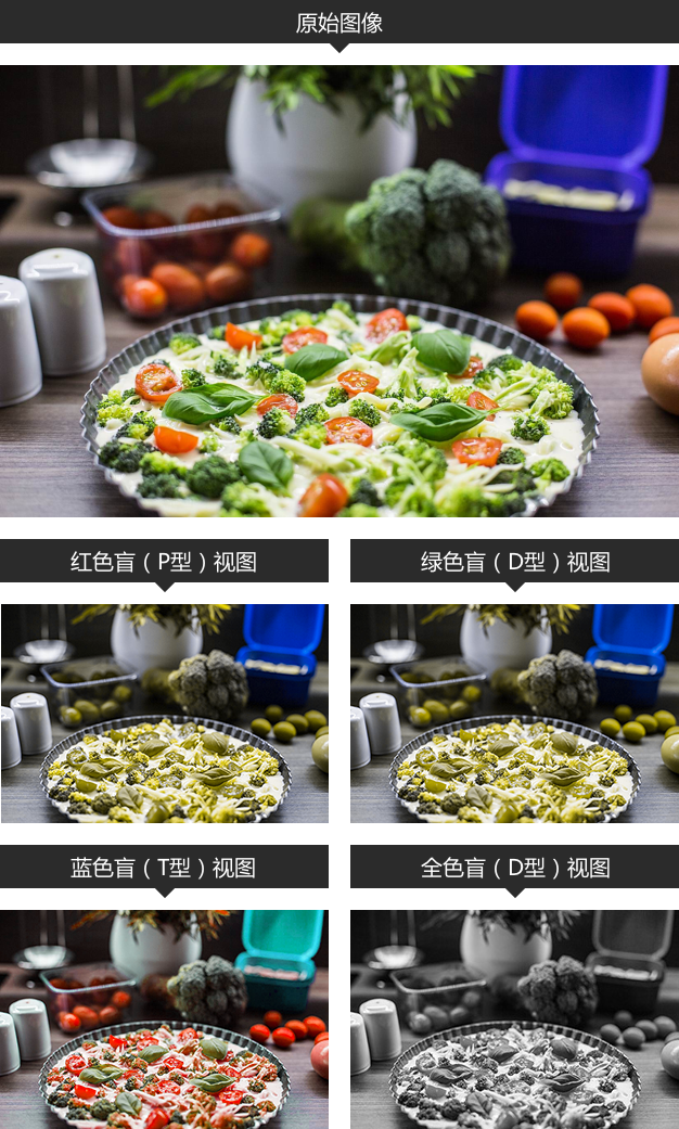 色盲人群可以分為:紅色盲(P)、綠色盲(D)、藍色盲(T)和全色盲。其中紅色盲和綠色盲最為普遍,合稱為紅綠色盲。紅綠色盲人數占到了色盲總數的99%,我們需要真實地走進他們眼中的世界: