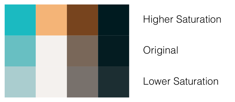 使用Sketch的調(diào)色盤,我們可以減淡或加深每一種色彩。既然有淺色和深色,我們就得稍微調(diào)節(jié)一下飽和度和明度。通常情況,調(diào)節(jié)色調(diào)時最好保持飽和度與明度近似,反之亦然。