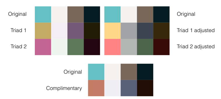 我們可以使用像Paletton這樣的在線工具幫助我們發(fā)現(xiàn)新的色彩。在本例中,我用了兩種不同工具來計算互補(bǔ)色和三色系。
