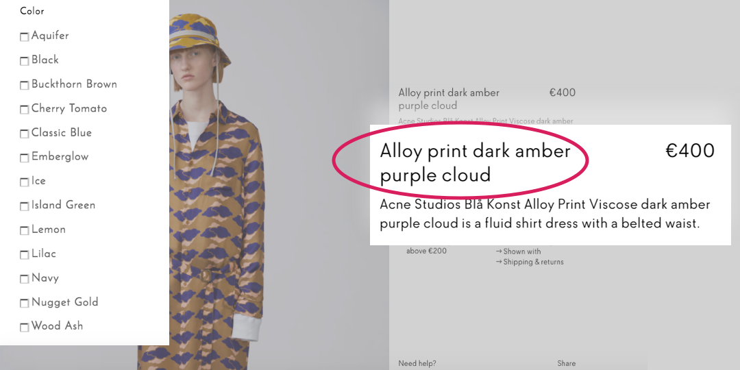 話雖如此,好的網站和應用程序盡可能的普遍地保持顏色描述。“淺粉色”或“深藍色”襯衫是描述產品顏色的更好方法。