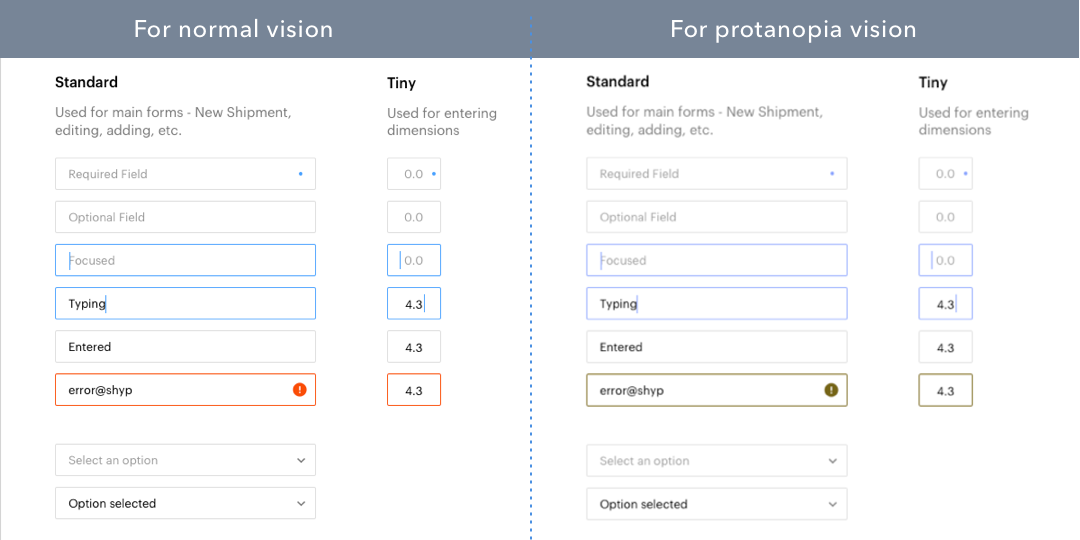 設計表單時的常見做法是以不同的顏色標記強制輸入字段。如果用戶嘗試提交沒有填寫的必填字段,輸入字段的邊框將更改為紅色,表示錯誤。但是,我們必須知道不是所有的用戶都以同樣的方式來體驗顏色。