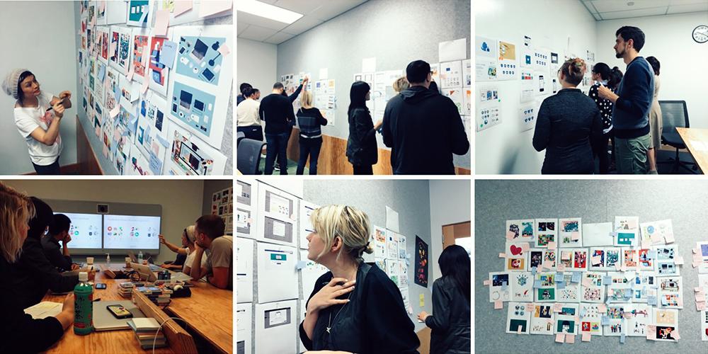 接下來,我將所有Facebook 旗下的商業產品、消費者側寫以及色彩進行了基本的審核。隨后,我將整體體驗和視覺上的脫節之處,展現給了相關的所有團隊。之后,我們針對不同的團隊展開了研討會,并且通過投票和貼紙填寫意見的方式,快速地統一并協調出了我們共同認為的成功的設計。